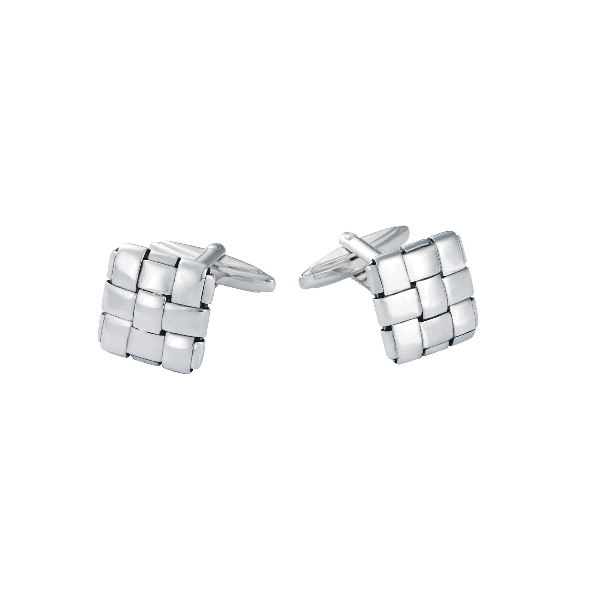 Skillfully handcrafted with sterling silver, the Weave A cufflinks feature an intricate and tight weave pattern. Highly polished for a bright finish with a toggle bar clasp.
