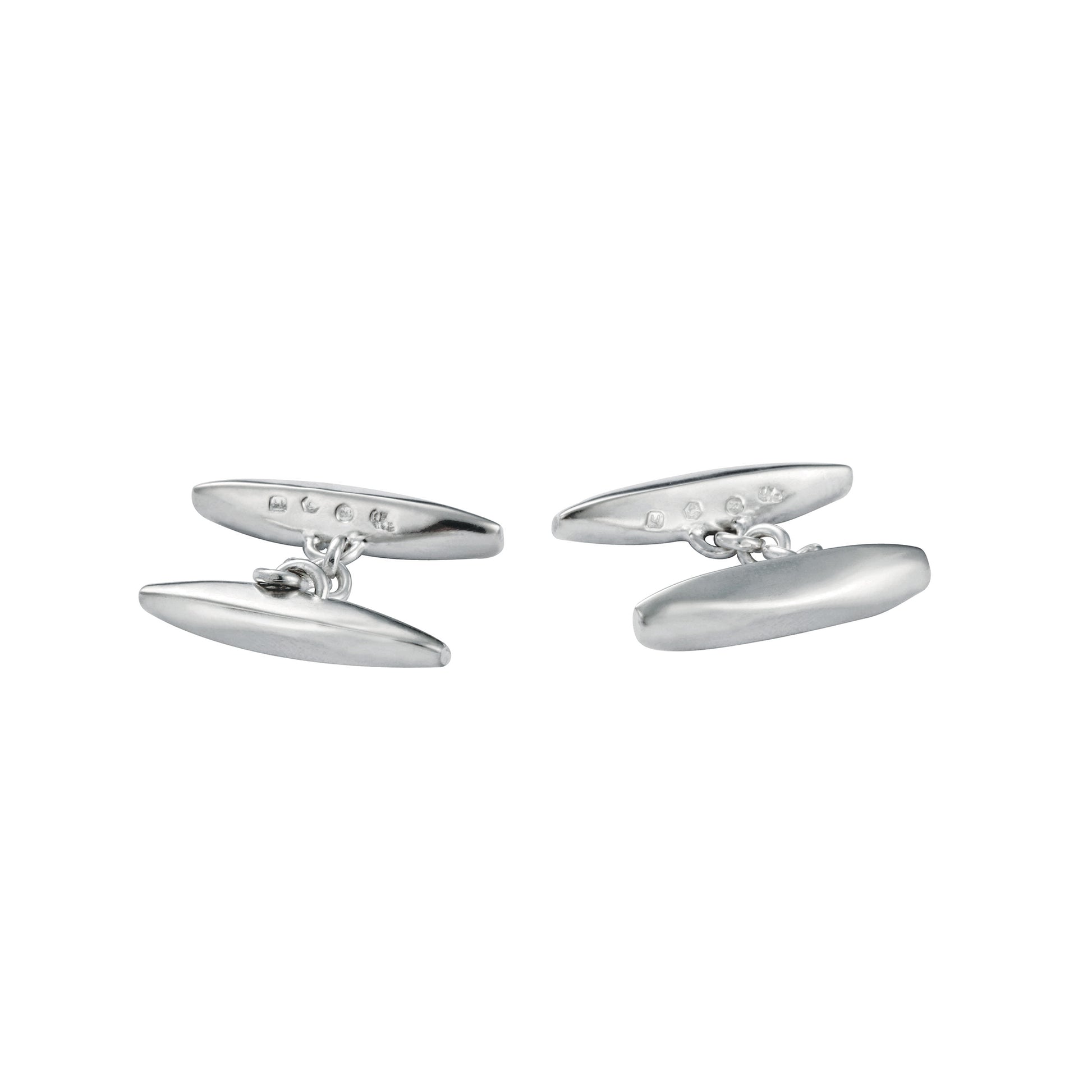 This pair of chain-link cufflinks resemble the shape of a saddle. Makes a great accessory for gentlemen and a meaningful gift for equestrians. In highly-polished sterling silver.