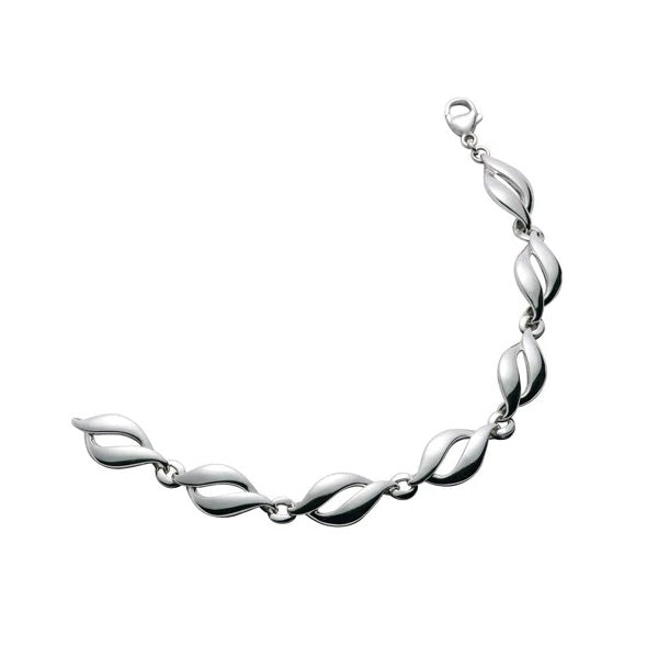 This striking Cypress bracelet is made up of interloped paisley motifs, designed like flowy swirls. In a lustrous sterling silver finish.