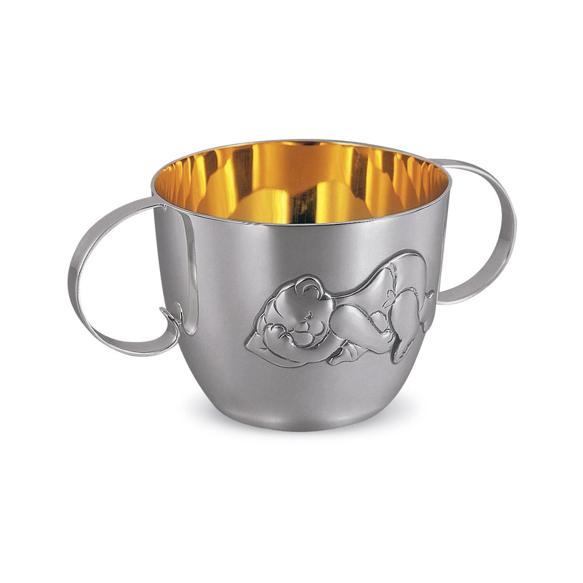 The mug provides two handles on each side for children to practice holding their mugs with both hands. The mug's exterior bowl features Teddy, while its interior is gilt in 24K gold. Space is available for personalisation.