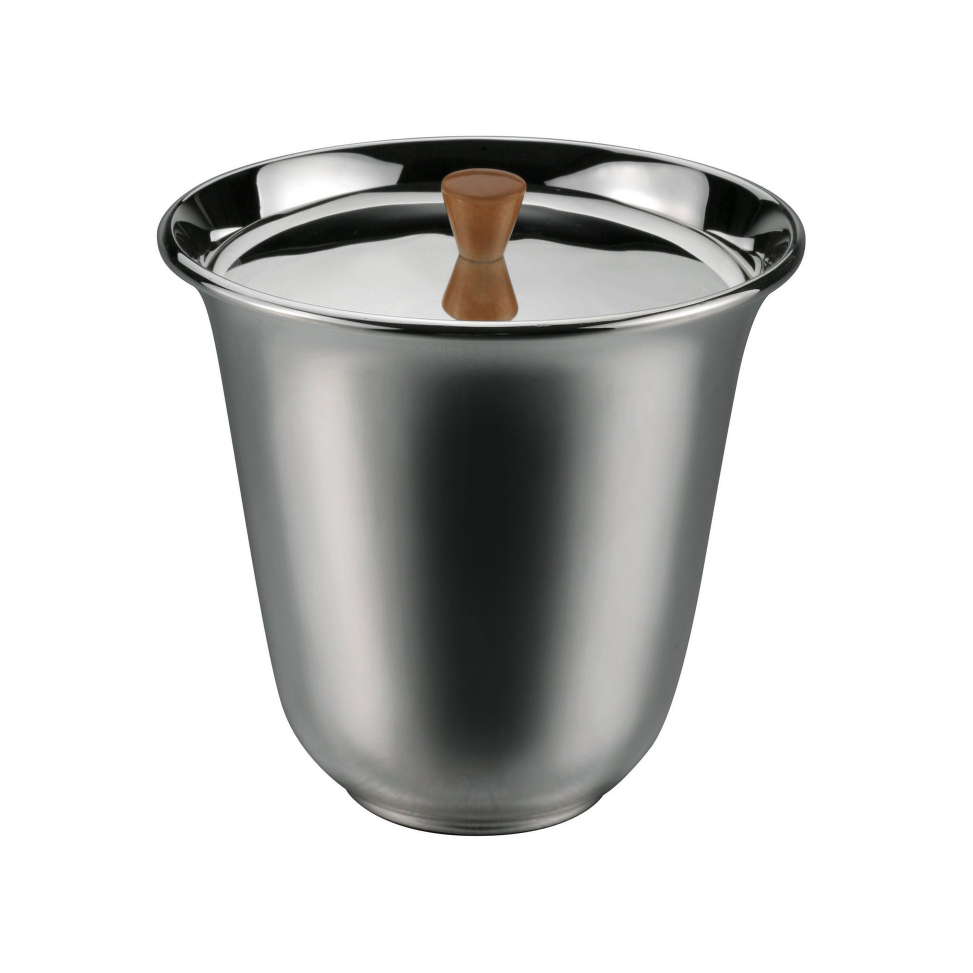 Designed from a no-frills, multi-functional and practical point, this minimalistic sugar bowl exudes understated elegance and is made of sterling silver. It features finials made of hand-carved Tagua nut. Tagua nut is a popular ivory substitute that is 100% organic. It is an indigenous South American palm.