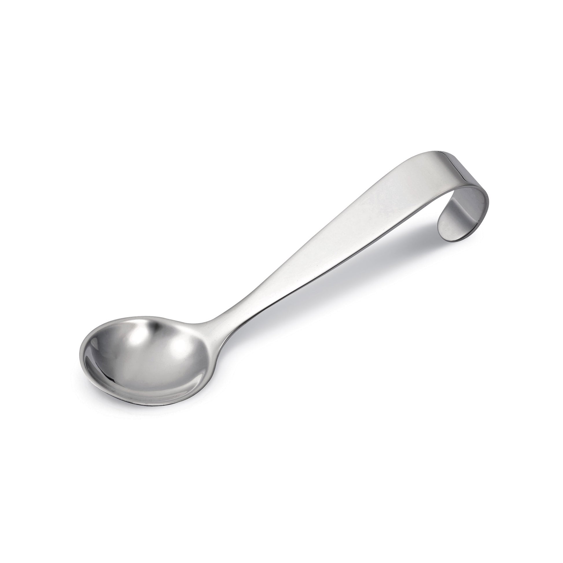 This sterling silver Baby spoon is modellled with a curved handle that allows it to be hung conveniently on the baby mug. The spoon is shaped for comfortable use to feed children.