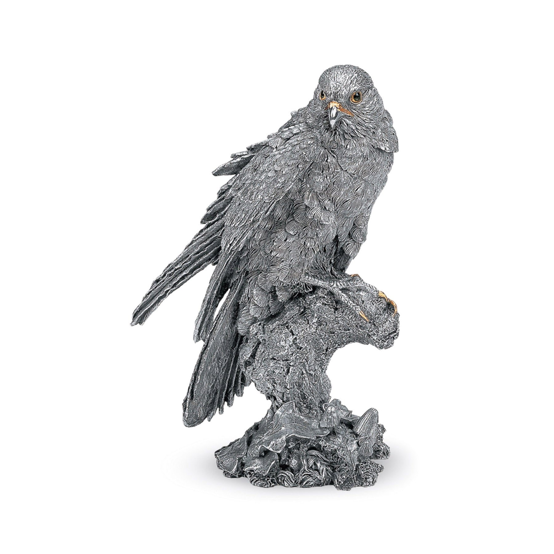 The silver-coated filled kestrel figurine undergoes twelve separate stages of manufacture; scrupulously quality-controlled at every stage before being lavishly enhanced with a layer of pure silver using electrodeposition techniques, for that exquisite finishing. A final layer of protective lacquer is then added to preserve the bright finish.