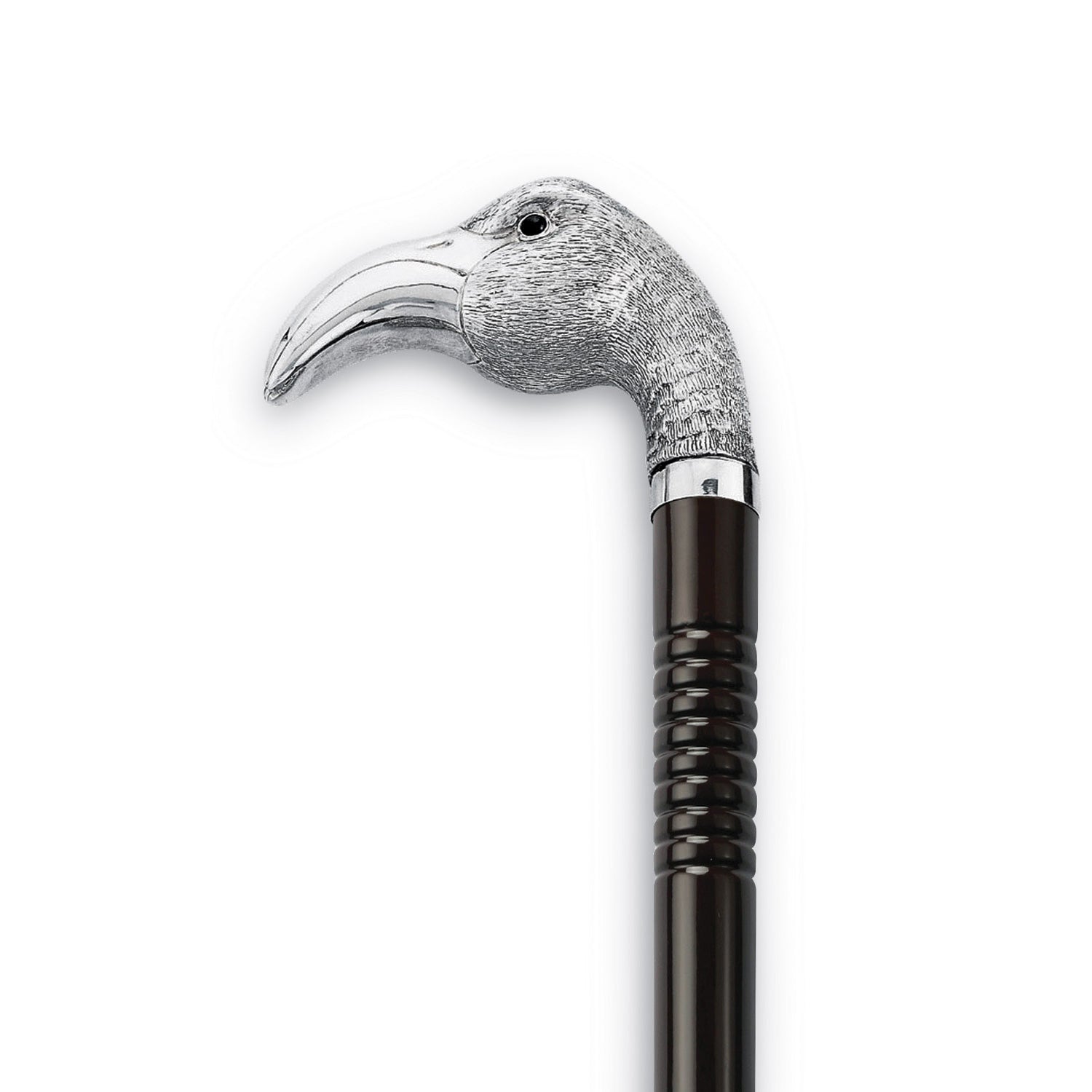 The Flamingo Walking Stick symbolises beauty, grace and balance, and it features sturdy construction from durable materials like a solid hardwood shaft made of Burmese teak wood in a walnut gloss finish, a sterling silvertip and neck ring, and a silver-coated filled handle.