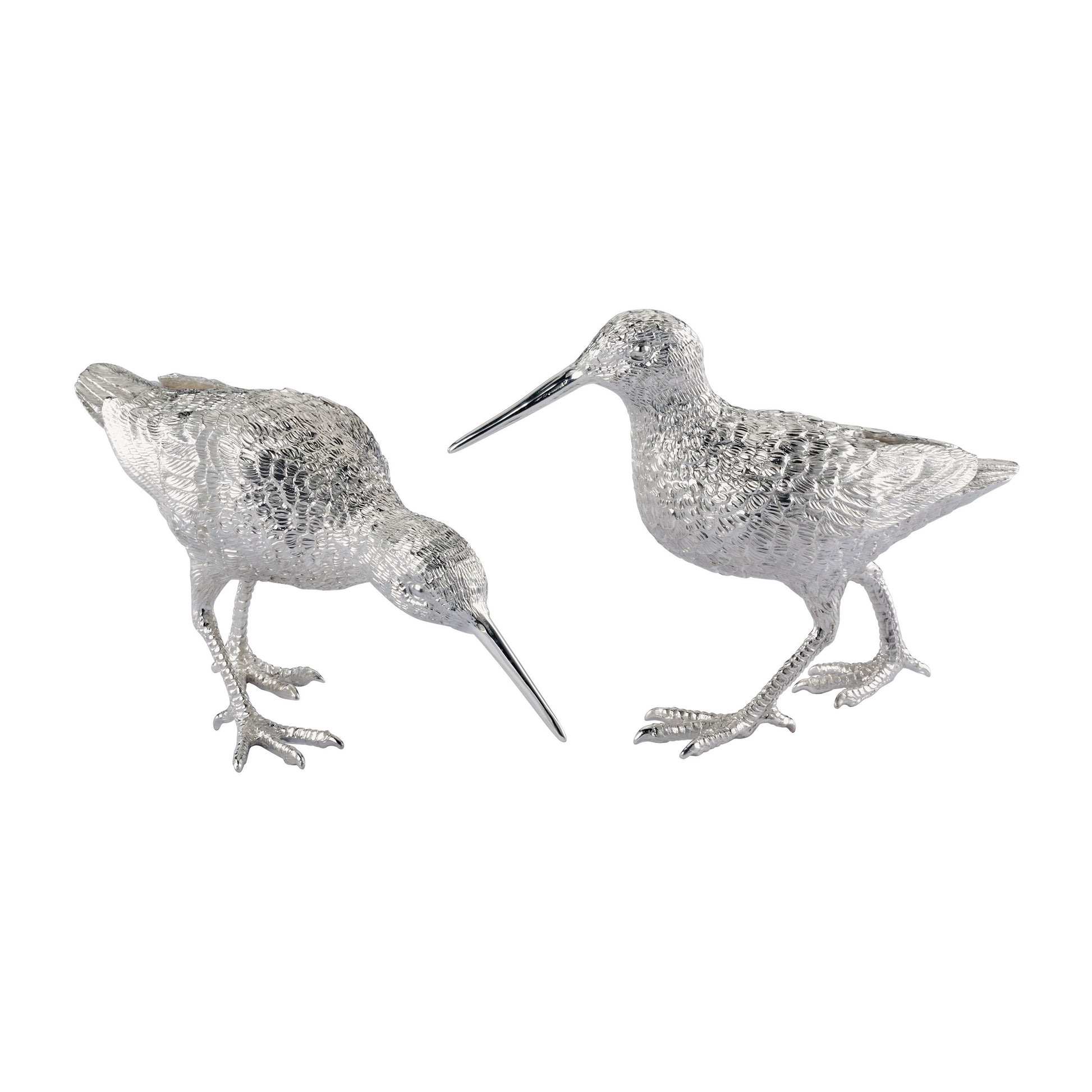 Magnificently hand chased from beak to tail tip, the Snipe pair figurines are cast in eight separate parts of solid silver, taken from moulds made using the lost wax process. A skilled craftsman will then hand chase all the details of the birds' feathers, thereby highlighting all the birds' life-like features. Each piece is unique as the handstrokes are all different.