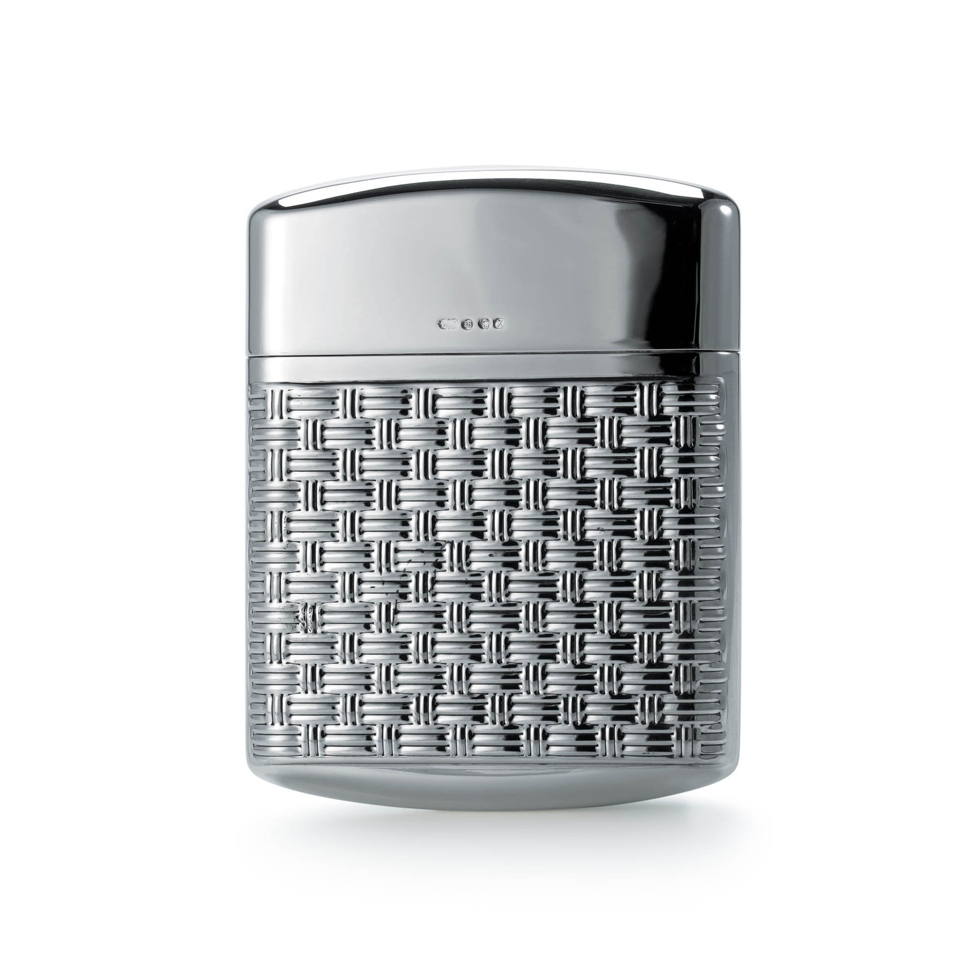 Weave carries a weaving motif on the case’s body. Made of sterling silver with hallmarks on the lids and a luxurious velvet inlay for firm fitting.